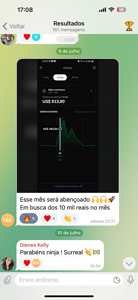Pessoas comuns, começando do zero, faturando em dólar com o mesmo método que você terá acesso hoje.